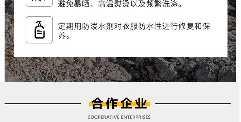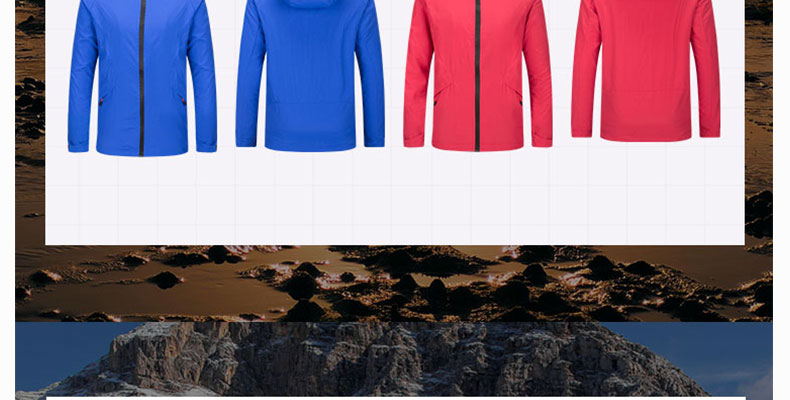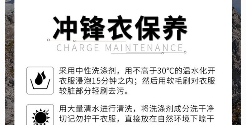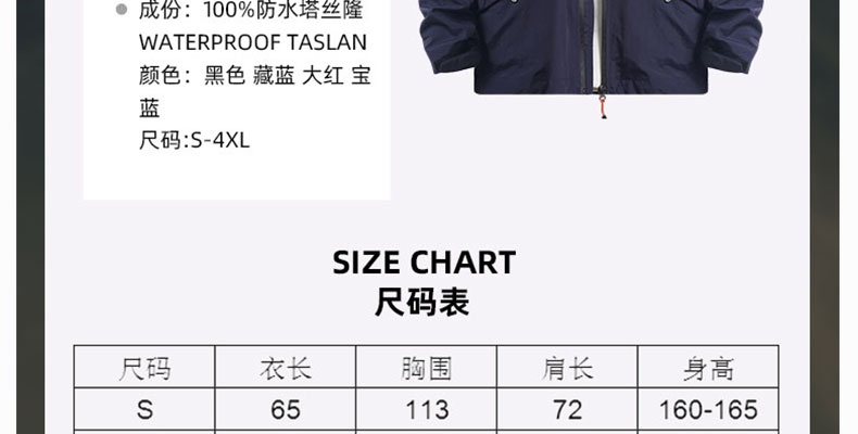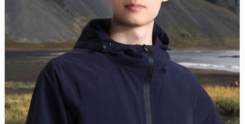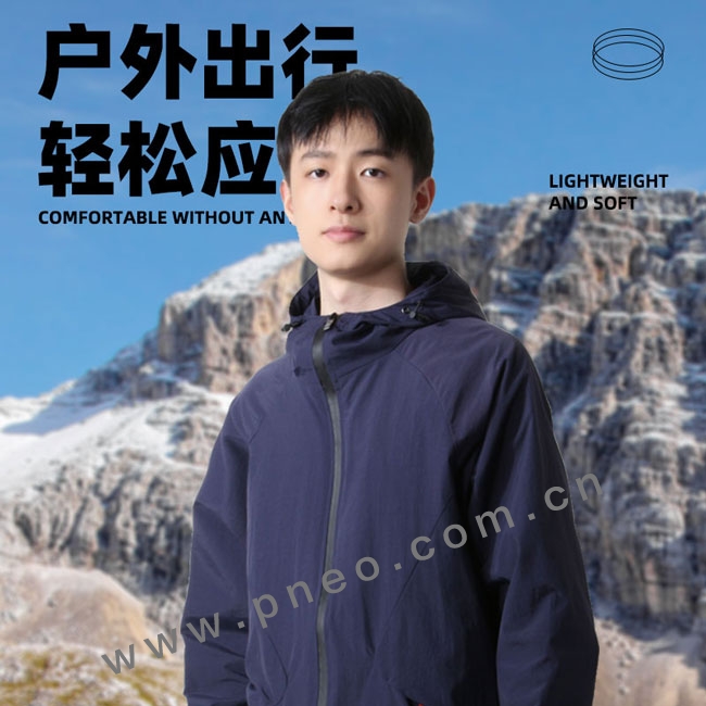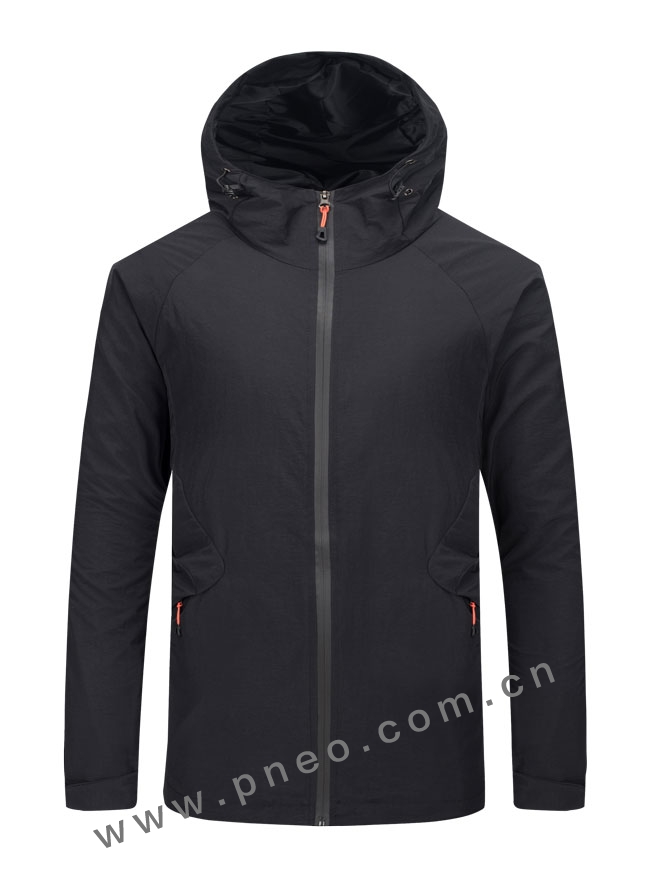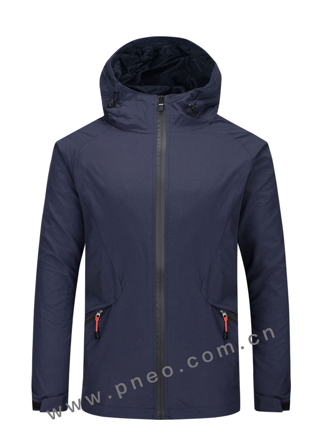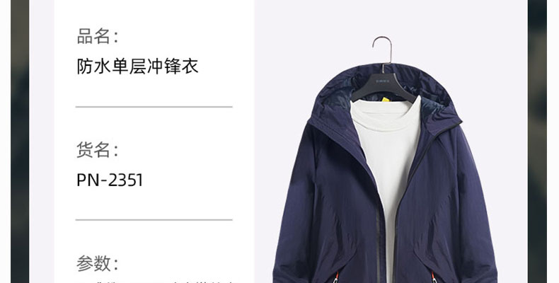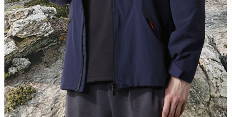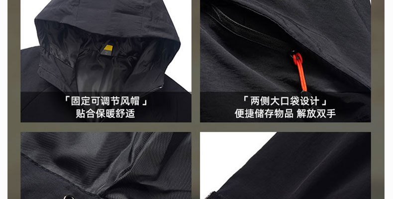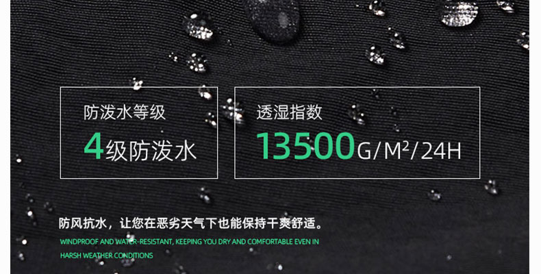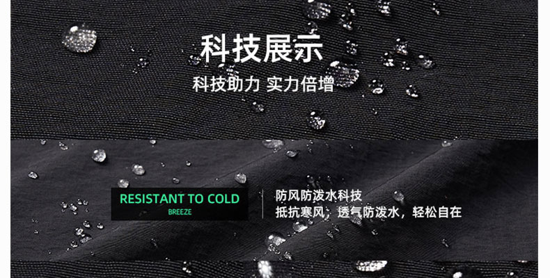 防潑水科技面料,類似荷葉效果,有效的阻擋小雨對人體運動的干擾,保持干爽舒適