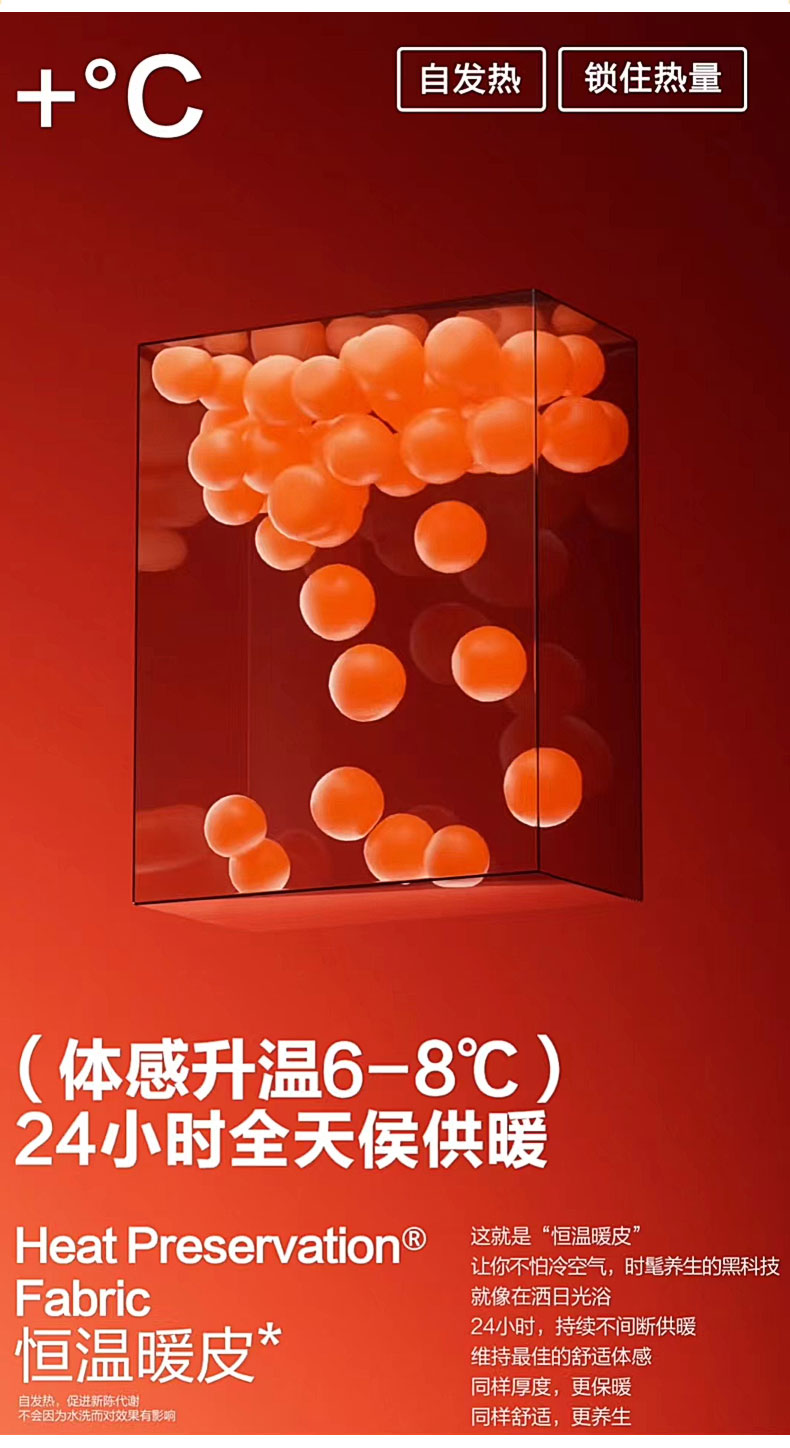 特性:時髦養生的黑科技,恒溫暖皮,促進新陳代謝,體感升溫6-8℃
